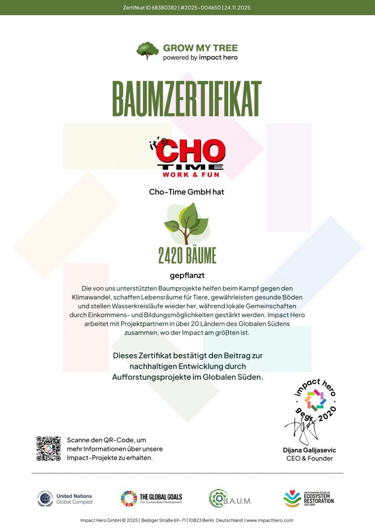 Durch den Umwelt- / und Nachhaltigkeitsbeauftragten der Cho-Time Group wurde in 2022 erstmals ein Maßnahmenplan entwickelt um das Thema Klimaneutralität in Angriff zu nehmen.